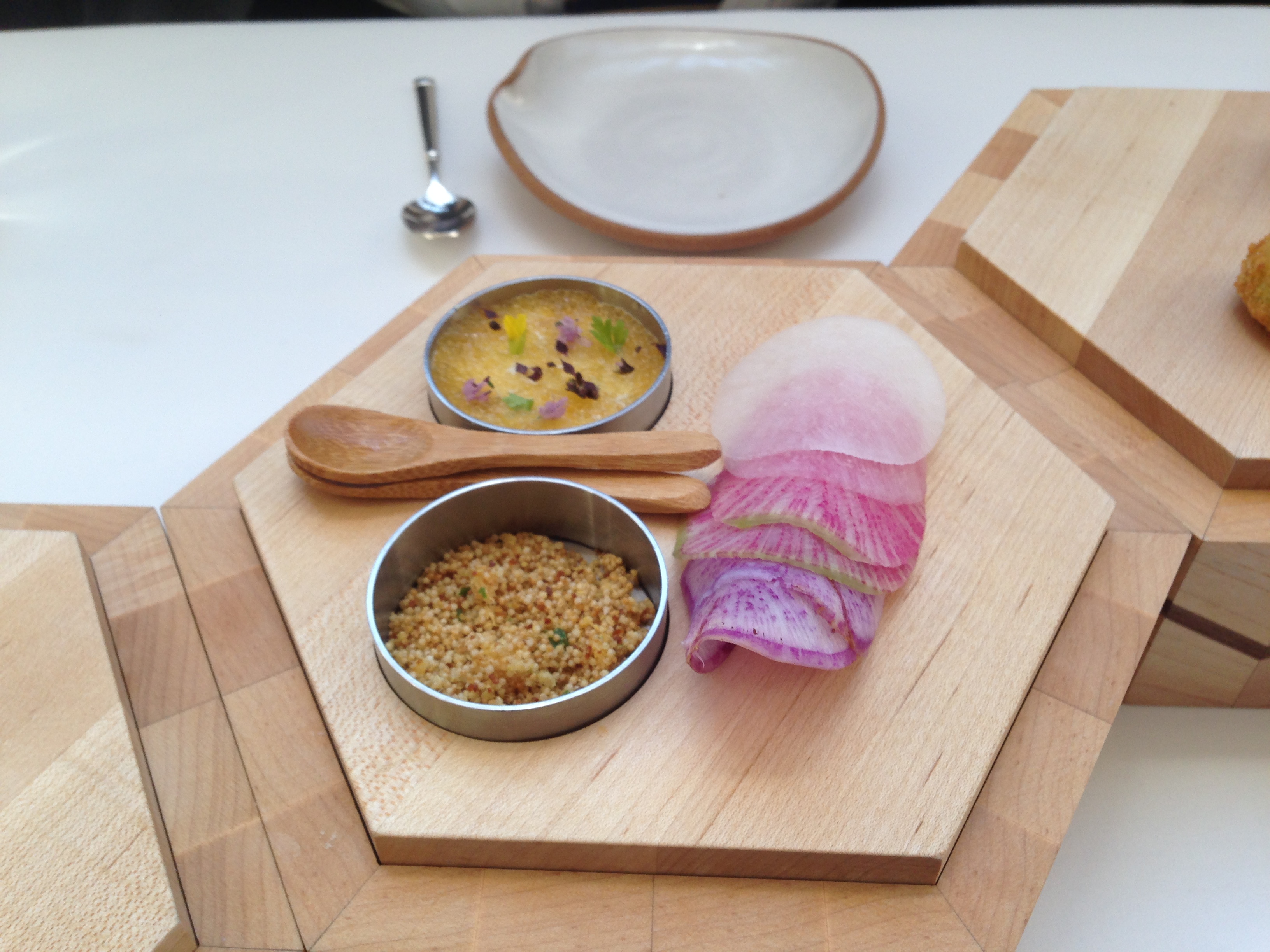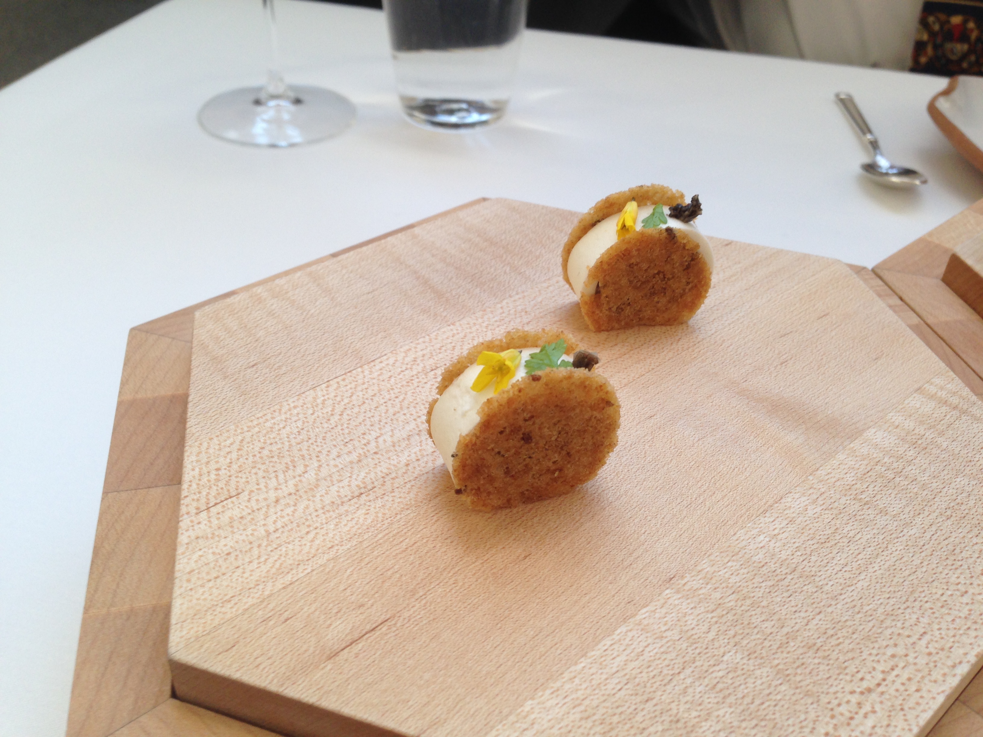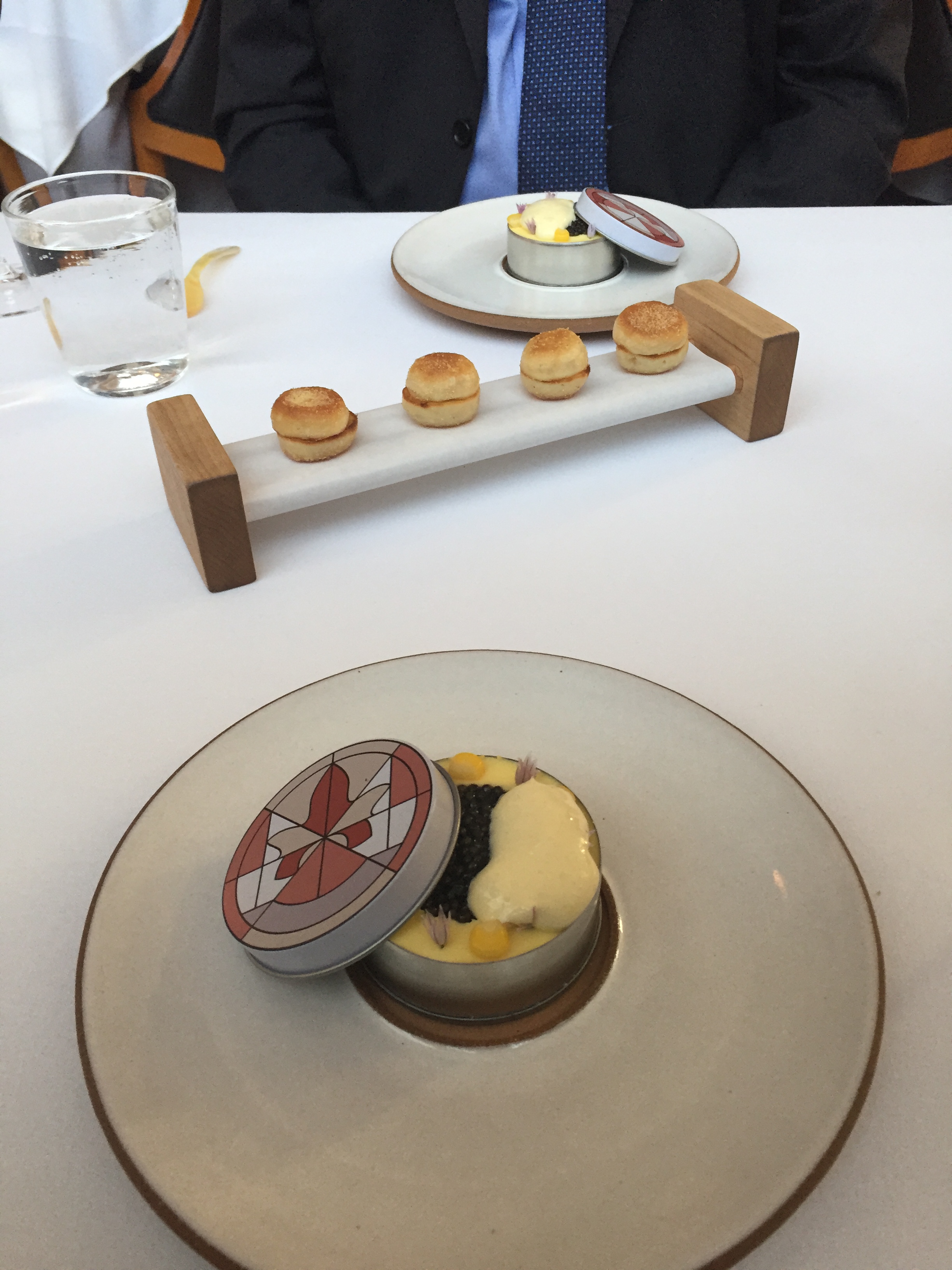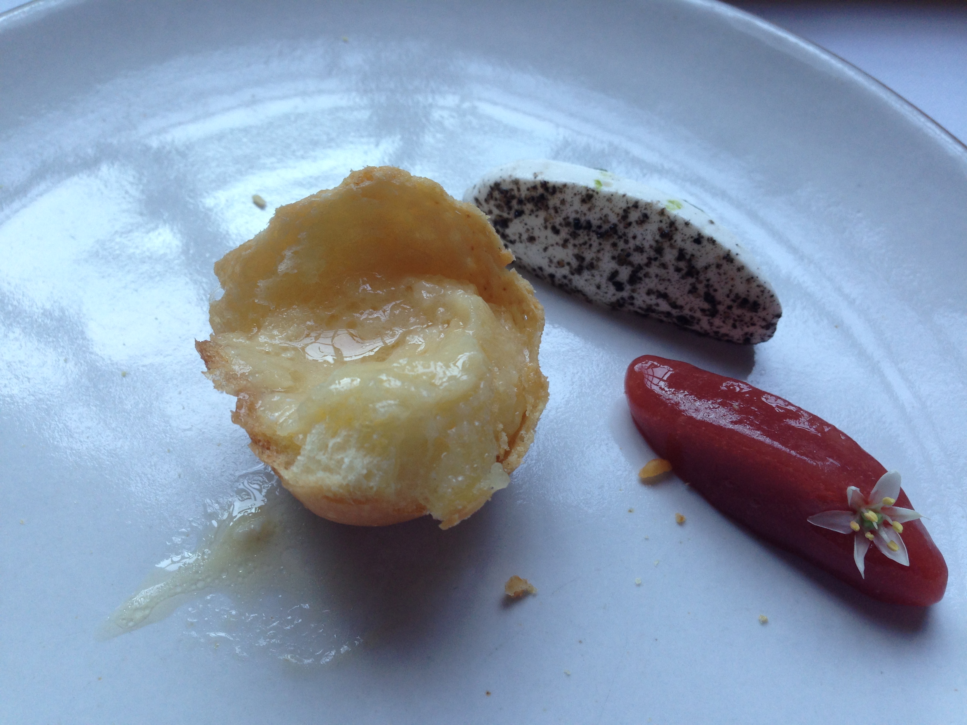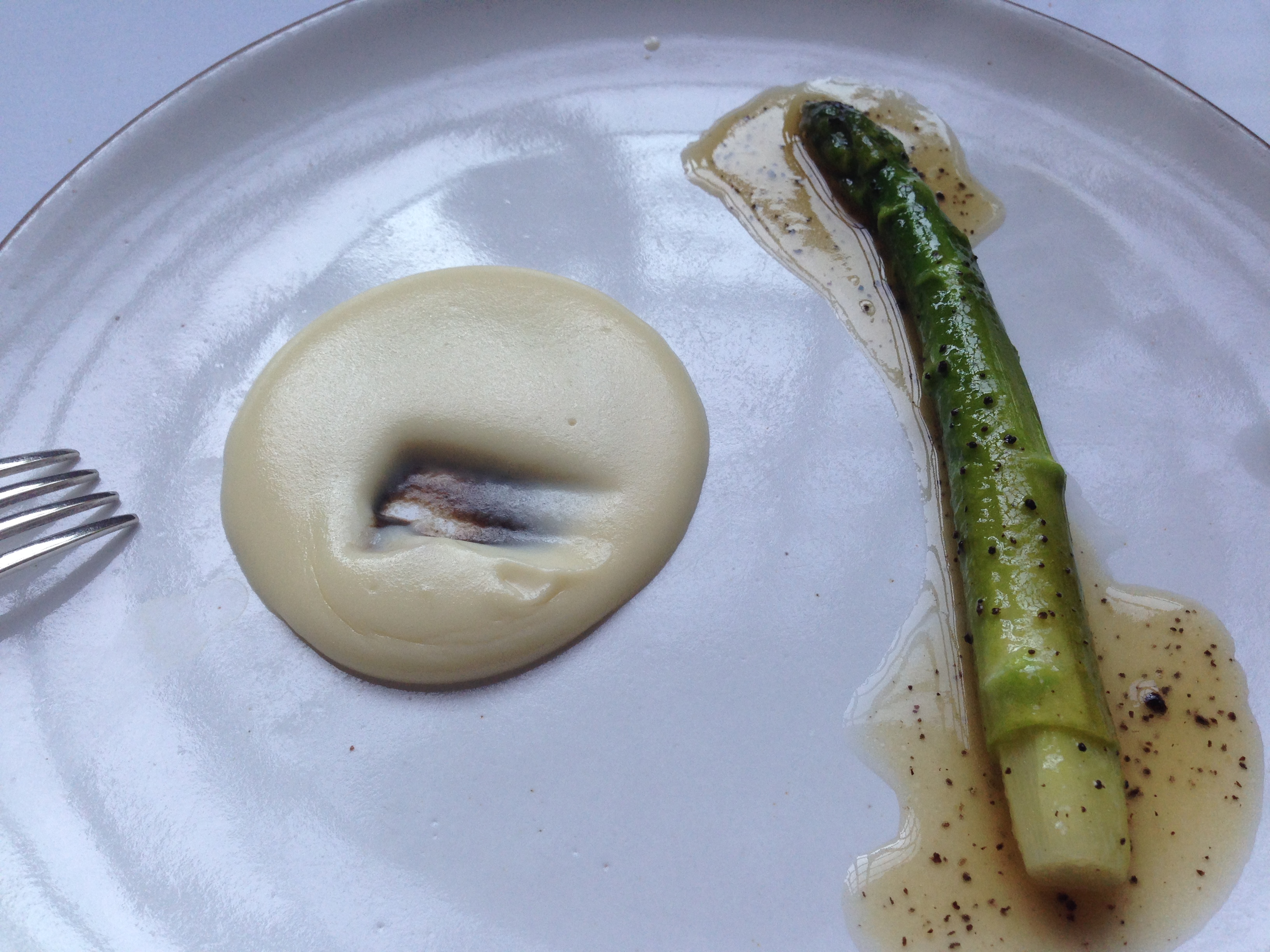 Es war ein durchaus amüsantes Essen mit einigen interessanten und einzigartigen Einfällen. Einige hervorragende Gänge (Kaviar Benedikt, der Hauptgang mit den Beilagen) wurden serviert. Einiges war furchtbar banal (der Keks, die Bretzel) und einiges etwas lächerlich (z.B. ein Spargel aus der Schweinsblase geboren).