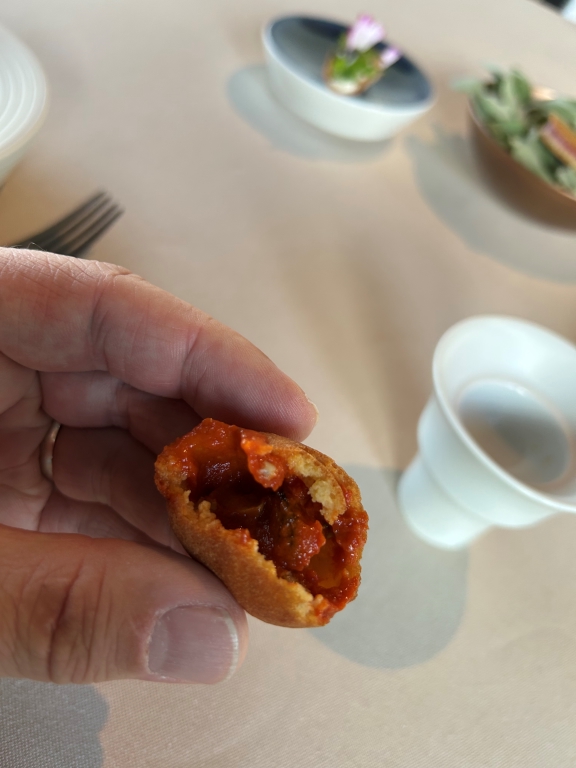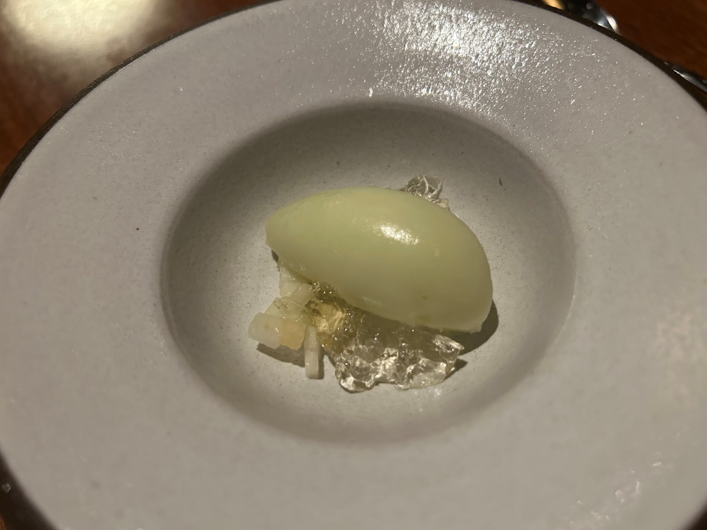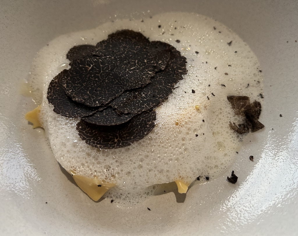 Als “Satellitenlöffel” wurde ein gefülltes Stück Morchel serviert. Auch sehr gut.