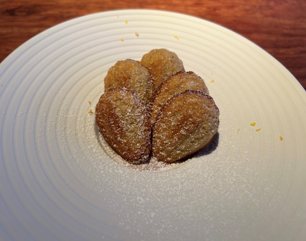 Sehr schöne kleine warme Madeleines auf Zimt und Zucker mit Zitronenzesten