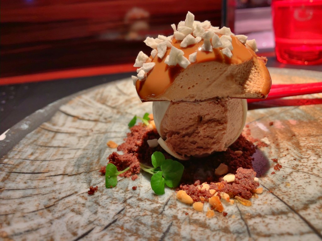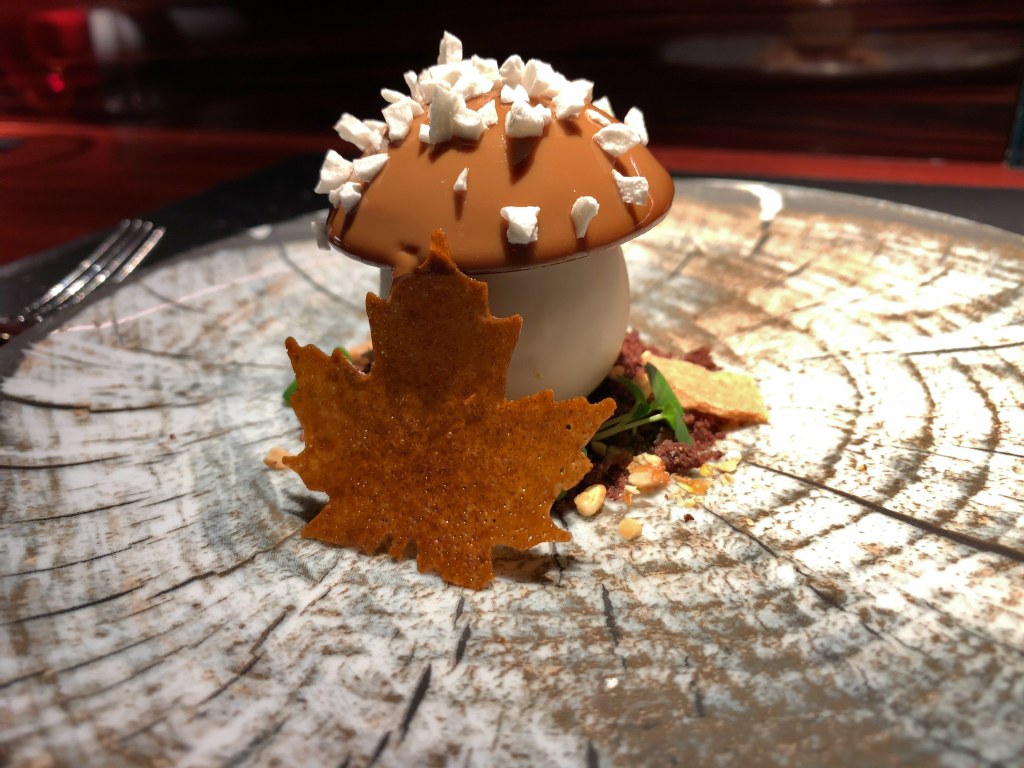 For the time being the black forest dessert is no more but now you can order another “mushroom”: “Le cloche au café”. Coffee, white chocolate, caramel and dark chocolate fit very well and make of it a really great dessert with extravagant appearance. It was the right decision going for it.