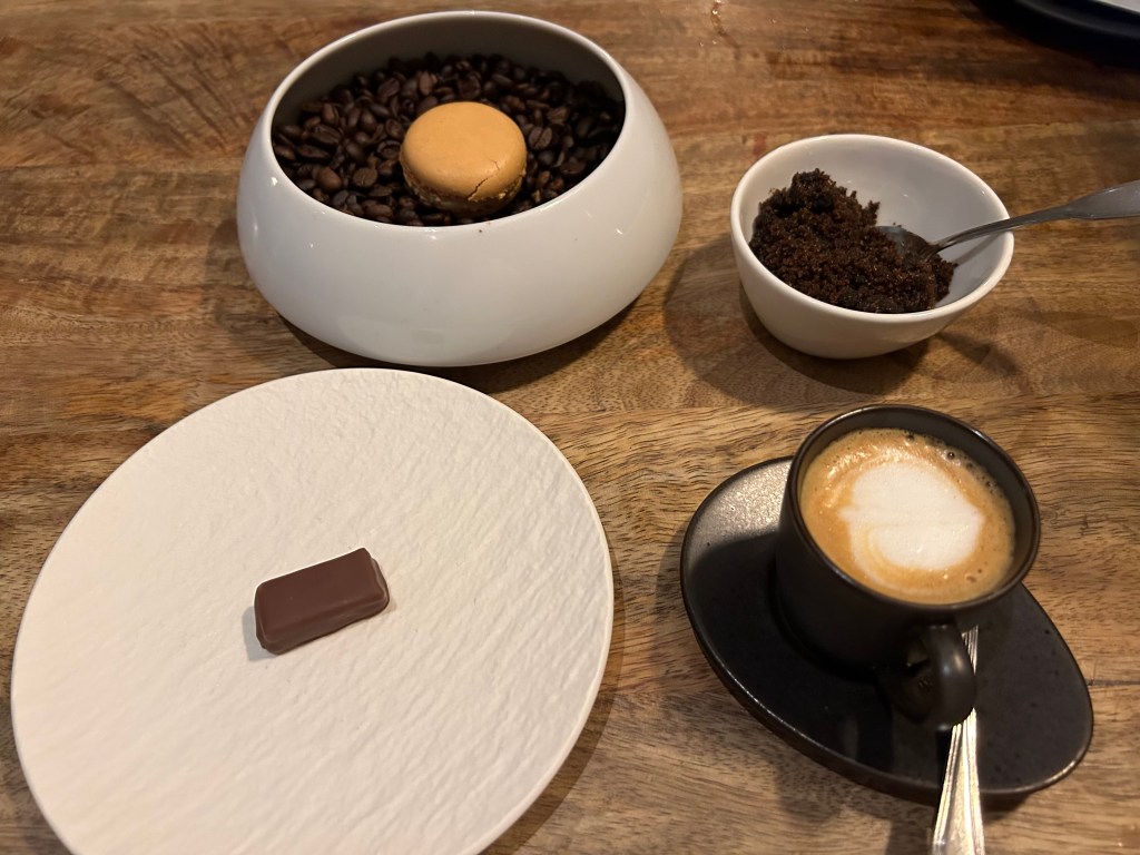 Hier werden durchdachte Gerichte serviert Und man hat den Mut, manchmal auch aussergewöhnliche Komponenten zu benutzen, was Schärfe und Säure angeht. Die beiden Fischgänge gefielen mir besser als die Fleisch-basierten. Zeitmanagement war gut. Entgegen der Vorhersage am Anfang des Abends, reichte es noch für das Dessert. Besonders möchte ich die alkoholfreie Getränkebegleitung loben, die hier einfallsreicher war als das, was ich bisher in dieser Richtung in Restaurants bekommen hatte.