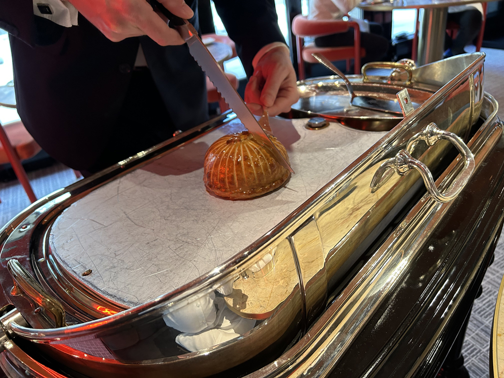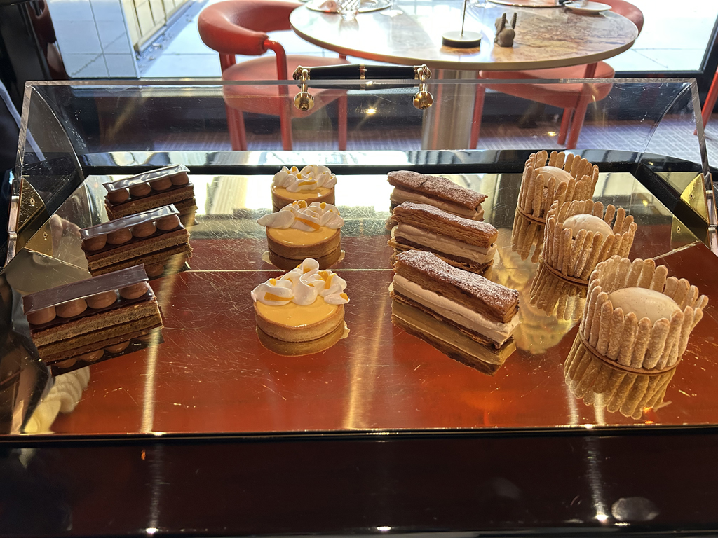 Etwa zur Hälfte des Aufenthalts wurde dieser Patisserie-Wagen durchs Restaurant geschoben. Das nenne ich gutes Marketing. Ähnlich gut, wie der Käsewagen im Aqua, auf den man zwangsweise am Eingang zuläuft.