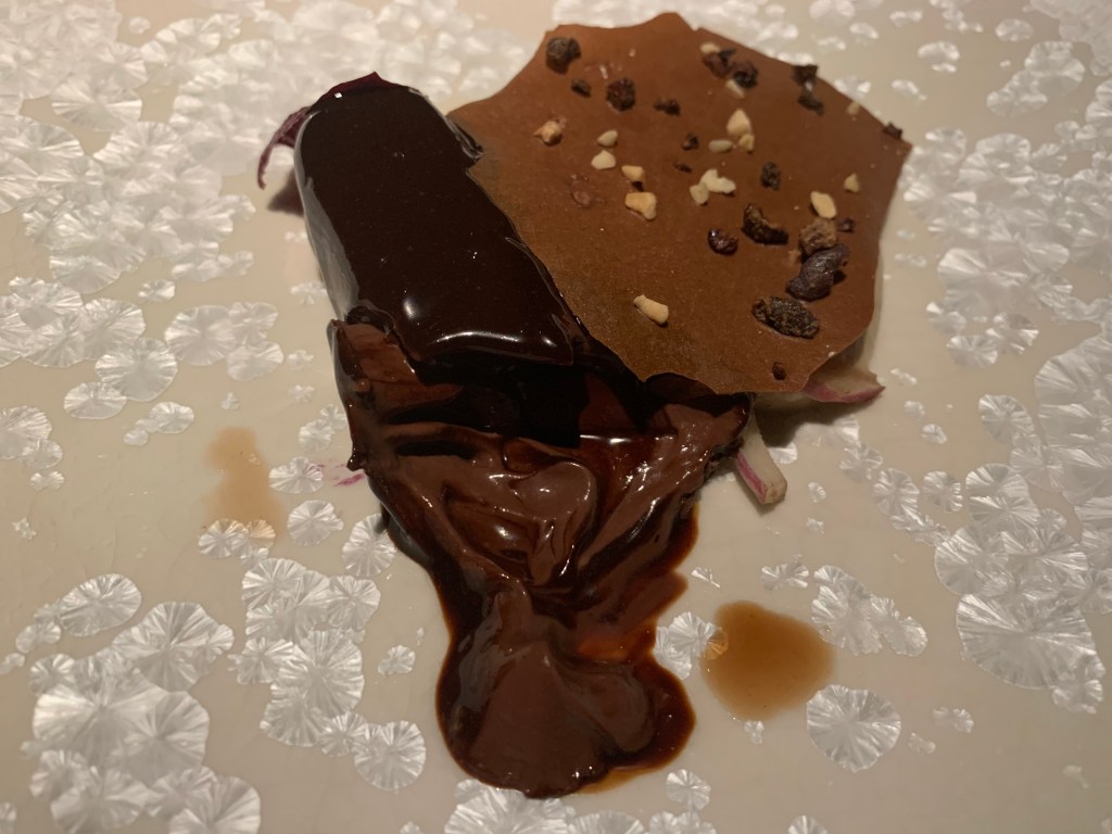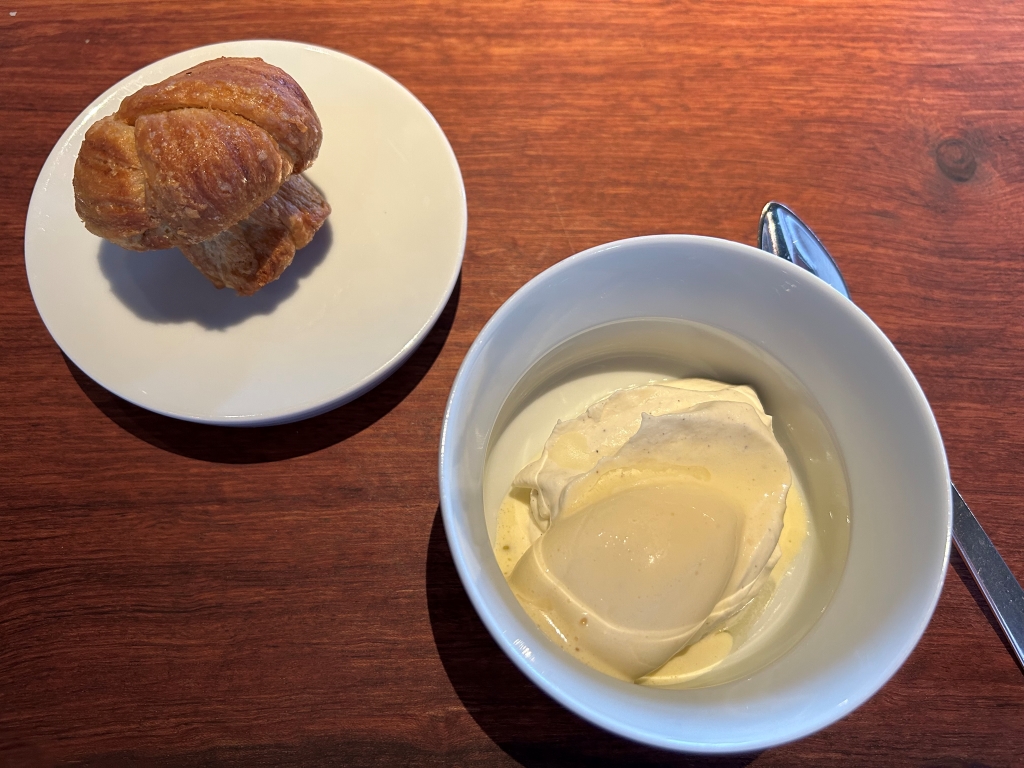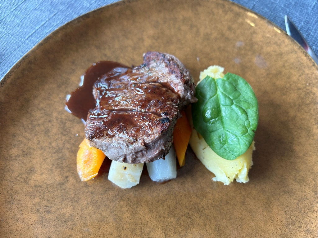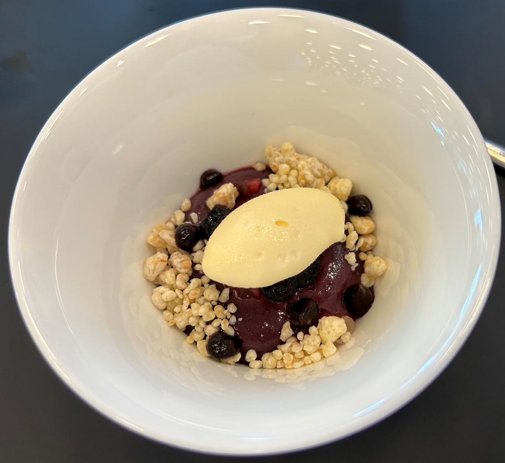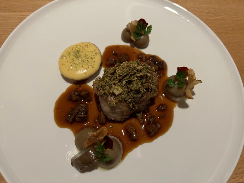 From the “Our Specials” section: Next was a very tender piece of the New Zealand lamb saddle with crispy skin a mustard lemon jus. Spätzle and lentils with meat from the gigot, Gruyère cheese foam, crispy fried onion rings. Spätzle and lentils is a typical meal from Swabia in southern Germany. I never had it so fine. I asked the Chef about his origin and it turned out that he grew up in the same area in Niedersachen where my family lived a long time.
