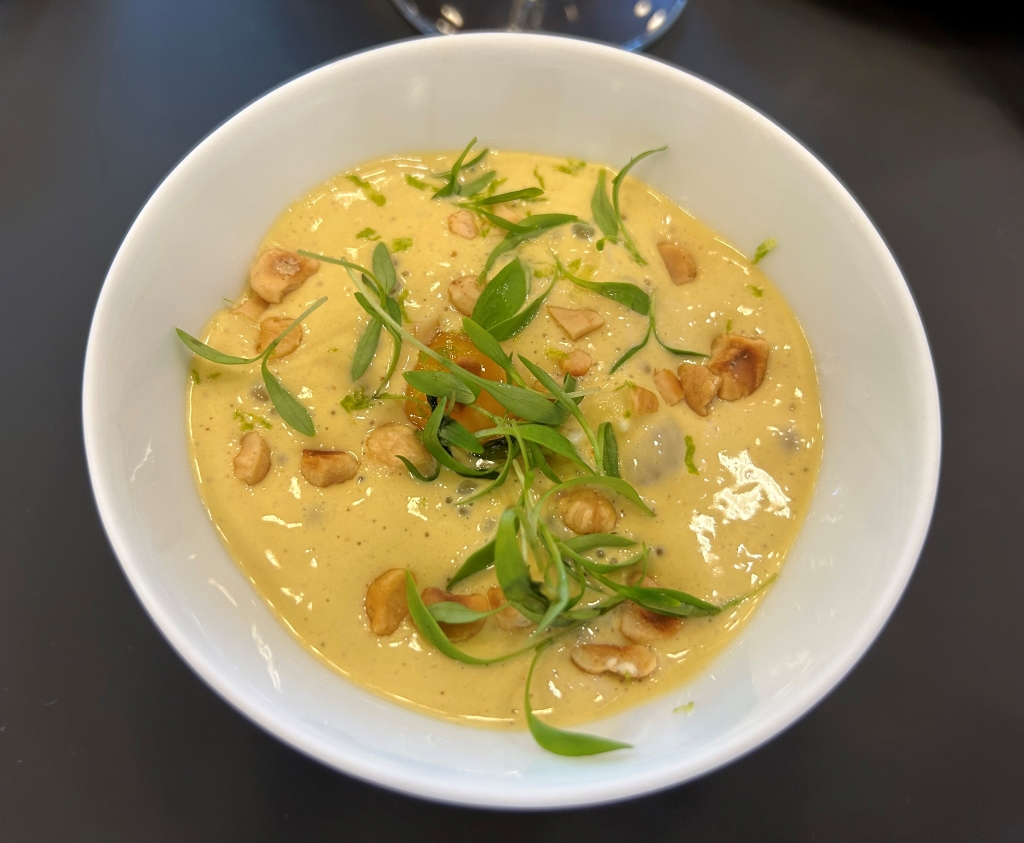 Celery prepared in pasta style, a crustacean of highest quality and optimal preparation and a coconut, lemongras, galangal sauce derived from Thai cuisine contributed to this excellent course.