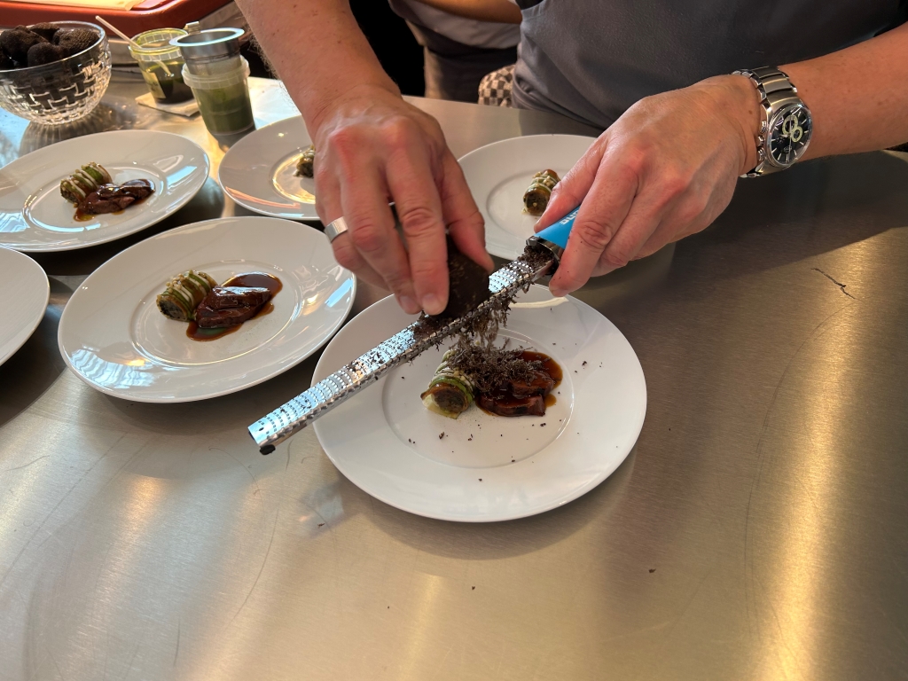 A couple of courses were served by Stefan Stiller himself, chef de cuisine Christiaan Stoop and another German member of the team who was preparing the meat at the hot station before serving. During the evening, we had a couple of interesting conversations including a view in the cold preparation and development kitchen 30 meters away.