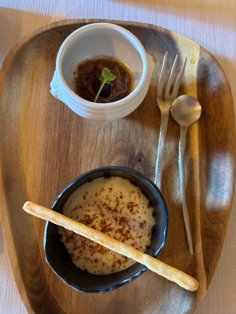 Kartoffel-Espuma mit Kartoffel, Bündner Tomme, Grissini mit Senf und Piment d’Espelette